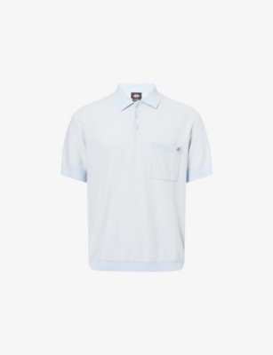 Dickies cotton knitted polo shirt100% cottonButton fasteningPolo collarRegular fit, collar, short sleeves, patch pocket at chest, brand appliquƩ at chest pocket, ribbed trimsMachine wash coldModel is 6ft 2in/1.88m and wears a size mediumMidweight, stretchy