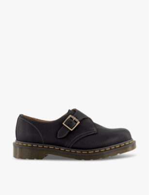 Dr.Martens leather loafers100% leatherAdjustable buckle fasteningRound closed toe, single monk strap with buckle embellishment, contrast stitchingSpecialist leather cleanUpper: 100% leatherLining: 60% leather, 40% textileSole: 100% synthetic
