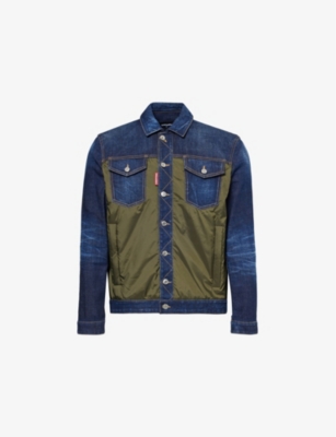 Dsquared2 denim-blend jacket99% cotton, 1% elastane; contrast 100% polyesterExposed button fastenings at frontRegular fit, spread collar, long sleeves, buttoned cuffs, two buttoned flap pockets at chest, contrast panels, two slip pockets at front, branded hardware, adjustable tabs at backMachine wash at 30°CSize UK 40: length 25.5in / 65cm, chest 42in / 107cmModel is 6ft 2in/1.88m and wears a size UK 40Midweight, non-stretch