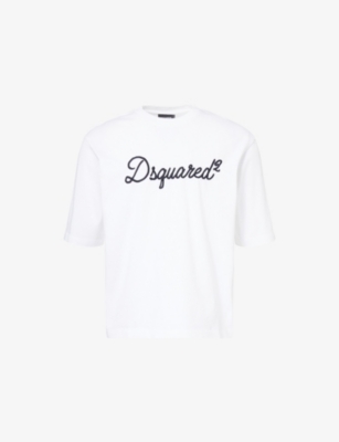 Dsquared2 cotton t-shirt100% cottonLoose fit, ribbed crew neck, short sleeves, embroidered logo at frontMachine wash at 30°CMade in PortugalModel is 6ft 2in/1.88m and wears a size mediumLightweight, slight stretch