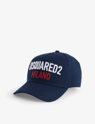 Dsquared2 cotton cap100% cottonPulls onCurved visor, brand embroidery at front, panelled, text embroidery at back, adjustable strap at back, branded hardwareWipe with a clean, dry cloth