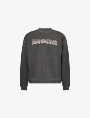 Dsquared2 cotton-jersey sweatshirt100% cottonPulls onRelaxed fit, crew neck, dropped shoulders, long sleeves, logo print at front, ribbed trimsMachine wash at 30°CMade in ItalyModel is 6ft 2in/1.88m and wears a size mediumMidweight, non-stretch