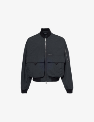 Dsquared2 shell jacket59% polyester, 41% polyamideExposed zip fastening at frontRegular fit, stand collar, long sleeves, zipped pockets at sleeve, brand print at front, two flap pockets at front, two slip pockets at front, ribbed trimsMachine wash at 30°CSize UK 40: length 25.5in / 65cm, chest 48in / 122.5cmModel is 6ft 2in/1.88m and wears a size UK 40Midweight, non-stretch