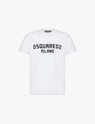 Dsquared2 cotton-jersey T-shirt100% cottonPulls onRelaxed fit, crewneck, short sleeves, branding at front, ribbed trimsMachine wash at 30°CModel is 6ft 2in/1.88m and wears a size mediumLightweight, non-stretch