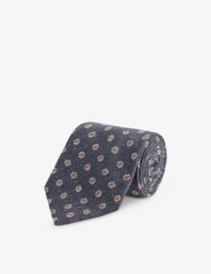 Dunhill silk tie100% silkSelf-tie fasteningPointed tip, keeper loop at back, floral designDry cleanLightweight, non-stretch