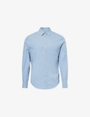 Dunhill cotton shirt100% cottonButton fasteningStraight-point collarRegular fit, collar, long sleeves, buttoned cuffs, straight yoke with pleat at back, curved hemMachine wash coldModel is 6ft 2in/1.88m and wears a size mediumLightweight, non-stretch