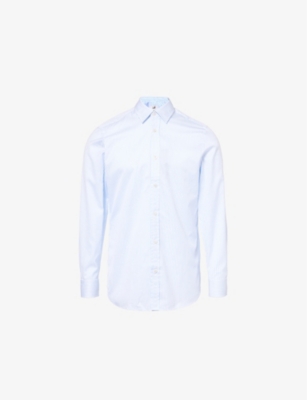 dunhill cotton shirt100% cottonExposed button fastenings at frontSpread collarButtoned cuffsRegular fit, long sleeves, stripe pattern, pleats at back, curved hemMachine wash at 40°CMade in ItalySize 15.5: length 31in / 79.5cm, chest 42in / 107cmModel is 6ft 2in / 1.88m and wears a collar size 15.5Midweight, non-stretch