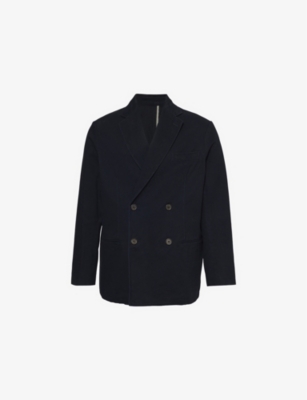 Emporio Armani cotton blazer100% cottonButton fasteningRegular fit, double-breasted, notched lapels, long sleeves, pockets at front, twill woven textureMachine wash coldModel is 6ft 2in/1.88m and wears a size UK 40Midweight, non-stretch
