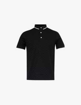 With an emblem as iconic as Emporio Armani’s eagle, we’re not surprised the Italian label splashes it across its collections. In fact, with this polo shirt, the flying bird can be seen woven right into the pure cotton fabric in a tonal jacquard design that blankets the entire regular-fit silhouette. Speaking of the silhouette, it’s kept classic with short sleeves and a neat collar, while striped trims top them both off for a sporty finish.Emporio Armani cotton polo shirt100% cottonExposed button fastenings at frontPolo collarRegular-fit, short sleeves, pearlescent buttons, all-over brand jacquard pattern, notched hemMachine wash coldModel is 6ft 2in/1.88m and wears a size mediumLightweight, non-stretch
