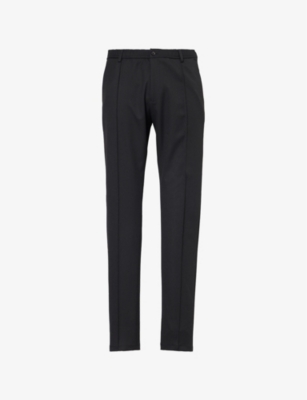 Emporio Armani woven trousers29% Viscose, 68% Polyester, 3% ElastaneButton and zip-fly fasteningStraight leg, belt loops, elasticated waistband, side pockets, front creasesDry cleanSize UK 30 : rise 12in / 30cm , leg length 35in / 88.9cm, leg opening 14in / 35.5cmModel is 6ft 2in/1.88m and wears a size UK 30Midweight, non-stretch