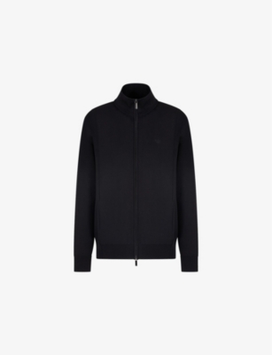 Mens Emporio Armani Eagle-Embroidery Zip-Through Knitted Cardigan