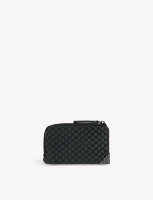Emporio Armani leather card holder100% bovine leather; lining 100% polyesterZip fasteningRectangular shape, brand design plaque and embossed pattern at front, smooth leather and two card slots at back, silver-toned hardware, one main compartment, internal brand patch, fully linedHeight 9.5cm, width 11cm, depth 2.5cmSpecialist leather cleanPresented in a box