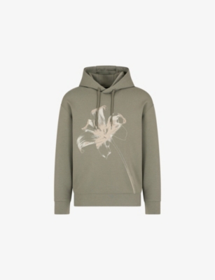 Emporio Armani cotton-blend hoody76% cotton, 18% polyester, 6% elastanePulls onRegular fit, hood with drawstring, long sleeves, graphic print at front, ribbed trimsMachine wash at 30°CMidweight, slight stretch