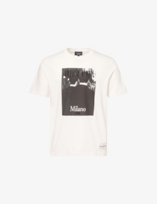 Emporio Armani cotton-jersey T-shirt100% cottonRelaxed fit, ribbed crewneck, short sleeves, brand embroidery and graphic print at front, brand patch at frontMachine wash at 30°CModel is 6ft 2in/1.88m and wears a size mediumLightweight, stretchy