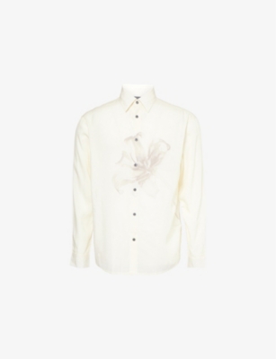 Emporio Armani woven shirt65% lyocell, 35% viscoseButton fasteningClassic collar, long sleeves, button cuffs, back yoke with darts, Lily floral print motif at front Dry clean onlyModel is 6ft 2in/1.88m and wears a size mediumMidweight, non-stretch