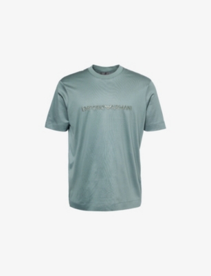 Emporio Armani cotton-blend T-shirt70% TENCEL™ lyocell, 30% cottonPulls onRegular fit, crew neck, ribbed trim and neck, dropped shoulders, short sleeves, logo embroidered at front, tonal stitchingMachine wash at 30°CModel is 6ft 2in/1.88m and wears a size mediumLightweight, slight stretch