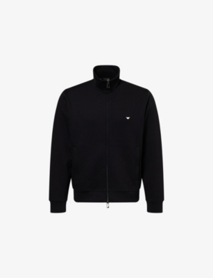 Emporio Armani stretch-jersey sweatshirt76% cotton, 18% polyester, 6% elastaneExposed two-way zip fastening at frontRegular fit, high neck, long sleeves, logo embroidered at chest, two side slip pockets, branded hardware, ribbed trimsMachine wash at 30°CModel is 6ft 2in/1.88m and wears a size mediumLightweight, slight stretch