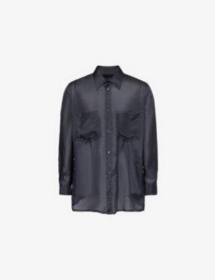 Emporio Armani silk shirt100% silkButton fasteningStraight-point collarRegular fit, collar, long sleeves, buttoned cuffs, patch pockets at chest, curved hemSpecialist dry cleanModel is 6ft 2in/1.88m and wears a size mediumLightweight, non-stretch
