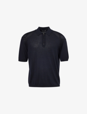 Emporio Armani cotton-blend polo jumper70% TENCEL™ lyocell, 25% cotton, 5% silkZip fastening at frontRelaxed fit, polo collar, quarter-zip placket, dropped shoulders, short sleeves, wide ribbing at sleeves, ribbed trims, branded silver-toned zipHand washModel is 6ft 2in/1.88m and wears a size mediumLightweight, stretchy