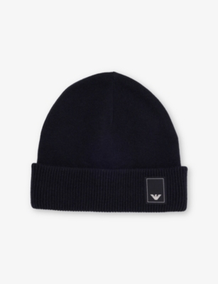 Emporio Armani wool and cashmere beanie hat70% wool, 30% cashmereDomed crown, turn-up brim, branded tab, ribbed, knittedDry cleanMidweight, slight stretch