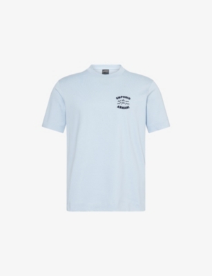 Emporio Armani cotton-jersey T-shirt100% cottonRegular fit, ribbed crewneck, short sleeves, brand and text embroidery at frontMachine wash at 30°CMade in BulgariaModel is 6ft 2in/1.88m and wears a size mediumLightweight, stretchy