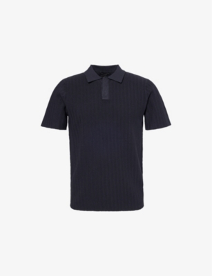 Emporio Armani knitted polo shirt72% viscose, 28% polyesterConcealed button fastenings at frontRegular fit, polo collar, short sleevesHand washModel is 6ft 2in/1.88m and wears a size mediumMidweight, slight stretch