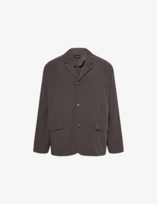 Emporio Armani stretch-woven blazer82% polyamide, 18% elastaneButton fasteningRegular fit, single breasted, notched lapels, long sleeves, patch pockets at front, linedMachine wash at 30°CModel is 6ft 2in/1.88m and wears a size UK 40Midweight, slight stretch