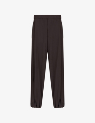 Emporio Armani stretch-shell trousers82% polyamide, 18% elastanePulls onRelaxed fit, straight leg, elasticated waistband with drawstring, two pressed-stud pockets at front, pleats at front, welt pocket at back, elasticated hemMachine wash at 30°CMade in TunisiaMidweight, stretchy