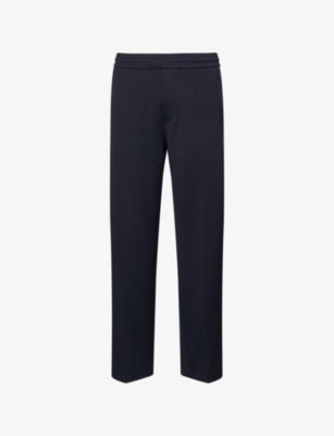 Emporio Armani cotton blend trousers82% cotton, 15% modal, 3% elastaneSelf-tie fastening at waist Elasticated waist with internal drawstring, two slip pockets at side, one jetted pocket at back, striped tape embroidered detailing at sides, logo plaque at backMachine wash at 30°CModel is 6ft 2in/1.88m and wears a size mediumLightweight, slight stretch