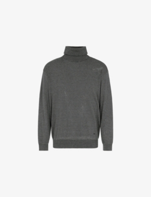 Emporio Armani knitted jumper55% lyocell, 40% virgin wool, 5% silk; contrast 54% lyocell, 39% virgin wool, 5% silk, 1% elastane, 1% polyamidePulls onRegular fit, turtleneck, long sleeves, all-over striped print, all-over knittedHand wash coldModel is 6ft 2in/1.88m and wears a size mediumMidweight, stretchy