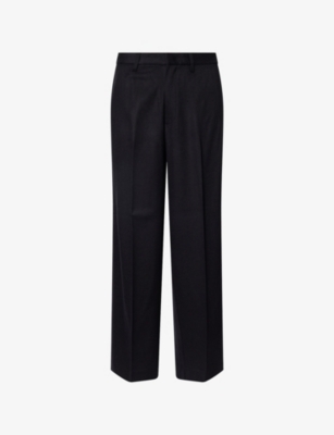 Emporio Armani wool and cashmere-blend trousers90% wool, 10% cashmereButton and zip-fly fasteningRegular fit, straight leg, mid-rise, two slip pockets at side, belt loops, press pleats, two welt pockets at back, brand tab at back, part linedDry cleanMade in ItalyTrue to sizeSize 32: rise 13in / 33cm inside leg 33in / 83.7cm, leg opening 20in/ 50.7cmModel is 6ft 2in/1.88m and wears a size UK 32Midweight, non-stretch