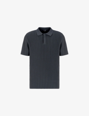 Emporio Armani woven polo shirt72% viscose, 28% polyesterExposed button fastening at frontRegular fit, polo collar, short sleeves, all-over textured fabrication, straight hemMachine wash at 40°CMidweight, slight stretch