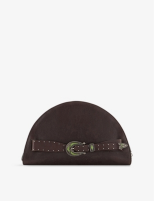 Emporio Armani leather clutch bag100% leatherZip fasteningHalf moon-shaped, crinkled leather, western-style embellishment, one main compartmentSpecialist leather clean