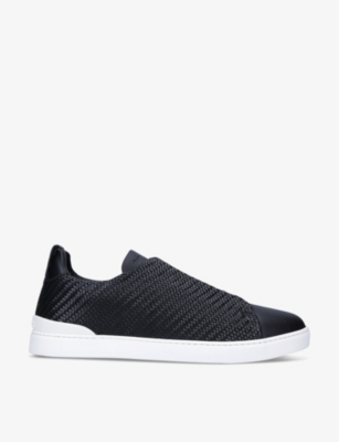 Ermenegildo Zegna leather trainers100% leatherSlips onRound toe, woven upper, elasticated lace detail at tongue, contrasting soleSpecialist leather cleanMade in ItalyUpper: 100% leatherLining: 100% leatherSole: 100% rubber