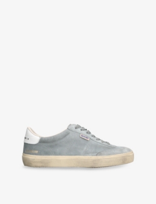 Golden Goose suede low-top trainers100% suedeLace-up fasteningRound closed toe, logo patch at tongue, logo tag at side, leather trim, branded heel panel, distressed finishSpecialist leather cleanUpper: 100% suedeLining: 45% textile polyurethane, 33% cotton, 14% viscose, 8% polyesterSole: 100% rubber
