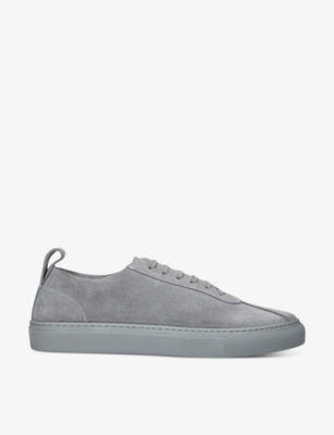 Grenson suede low-top trainers100% suedeLace-up fasteningLow top, round closed toe, pull-tab at rear, embossed branding to the back, unlined, ‘The Good Shoe’ branded soleSpecialist leather cleanUpper: 100% suedeSole: 100% rubber