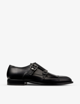 Mens Jimmy Choo Finnion Double-Strap Leather Monk Shoes