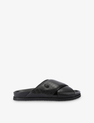 Kurt Geiger London leather sandals100% leatherRound open toe, cross-strap design, logo embellishment at the strap, all-over embossed finishSpecialist leather cleanUpper: 100% leatherLining: 100% leatherSole: 100% rubber