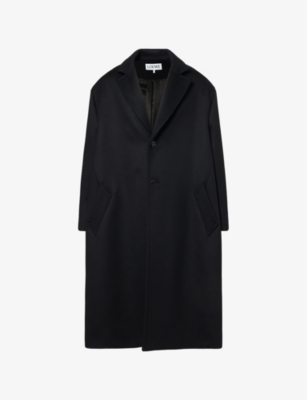 Loewe wool coat100% woolButton fasteningRelaxed fit, double breasted, dropped shoulders, long sleeves, front welt pockets, embroidered logo at internal chestDry cleanMade in ItalySize UK 40: length 52in / 132cm, chest 56in / 142cmModel is 6ft 2in/1.88m and wears a size UK 40Midweight, non-stretch