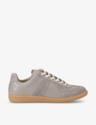 Maison Margiela leather low-top trainers100% leatherLace-up fasteningRound toe, suede panels, branded tongue, stitch branding to the back, contrasting midsoleMade in ItalySpecialist leather cleanUpper: 100% leatherLining: 100% cottonSole: 100% rubber