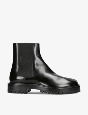 For over 30 years, Maison Margiela’s Tabi boots have been a signature of the label. Modelled on traditional Japanese socks worn with sandals since the 15th century, they’re crafted from leather with the iconic split toe. This pair has been updated for SS24 for a more pared-back aesthetic while still sitting on the low heel. We’ll be wearing these day in, day out, whatever the occasion may be.Maison Margiela leather boots100% leatherSlips onClosed toe, split toe detail, cylindrical block heelSpecialist leather cleanMade in ItalyUpper: 100% leatherLining: 100% leatherSole: 100% leather