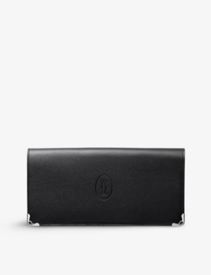 Cartier leather walletCRL3001361Embossed ‘Double C’ monogram, stainless steel metal corners, interior silver-coloured Cartier marking, seven credit card slots, two flat pockets, one gusseted pocketHeight 9cm, width 18.7cmMade in Italy