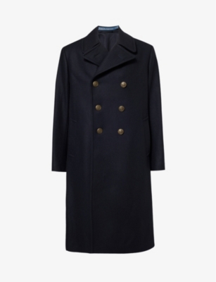 Polo Ralph Lauren wool-blend coat80% wool, 20% polyamide; lining 100% cotton; sleevelining 55% polyester, 45% viscoseExposed button fastenings at frontRegular fit, double-breasted, notch lapels, long sleeves, logo patch at cuff, branded metal buttons, two side slip pockets, one interior chest pocket, one interior waist pocket, belt trim at back, single rear vent, fully lined .Dry cleanMade in ItalySize UK 42/R: length 47in / 119cm, chest 39in / 99cmModel is 6ft 2in/1.88m and wears a size UK 40