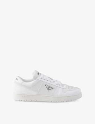 Prada leather low-top trainers100% leatherLace-up fasteningRound toe, brand plaque at side, brand foiled text at tongue, embossed branding at heelSpecialist leather cleanUpper: 100% leatherLining: 100% syntheticSole: 100% rubber