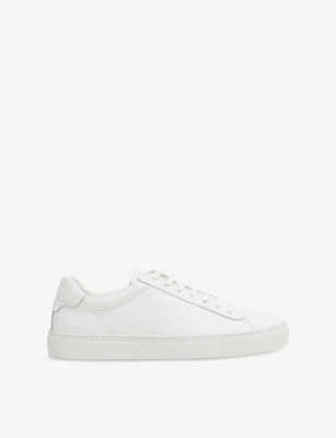Reiss leather low-top trainersLace-up fasteningLow-top, round closed toe, printed foil logo at back, panelled designSpecialist leather cleanUpper: 100% leatherLining: 65% leather, 35% polyesterSole: 100% rubber