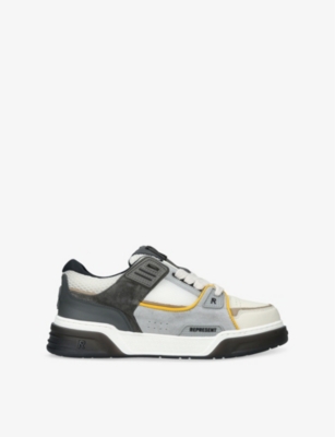 Represent leather trainers100% leatherLace-up fasteningChunky silhouette, brand text print, lace-up style, contrast accentsSpecialist leather cleanUpper: 100% leatherLining: 100% textileSole: 100% rubber