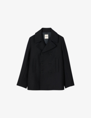 Sandro woven coat54% polyester, 46% virgin wool; lining 100% viscoseExposed button fastenings at frontRegular fit, notched lapels, long sleeves, double-breasted, two slip pockets at front, linedSpecialist dry cleanMidweight, non-stretch