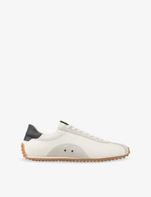 Sandro leather low-top trainers100% leatherLace-up fasteningRound toe, panelled design, branded tab to tongue, breathable eyelets to side, studded treadSpecialist leather cleanUpper: 100% leatherLining: 100% polyesterSole: 100% rubber