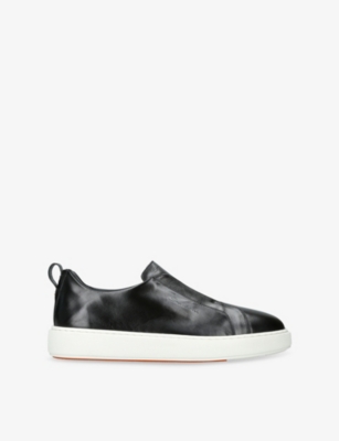 Santoni leather trainers100% leatherClosed round toe, low-top silhouette, embossed branding at side and tongue, pull-tab at back, rubber cupsole, contrasting midsole, contrasting graphic treadSpecialist leather cleanMade in ItalyUpper: 100% leatherLining: 100% leatherSole: 100% rubber