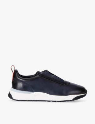 Santoni leather trainers100% leatherPulls onRound closed toe, perforated panels at the side, pull tab at the back, contrast solesSpecialist leather cleanUpper: 100% leatherLining: 100% leatherSole: 100% rubber
